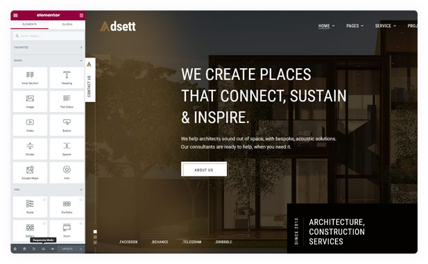 The Elementor website builder allows WordPress users to create and edit websites by employing the drag and drop technique, with a built-in responsive mode.